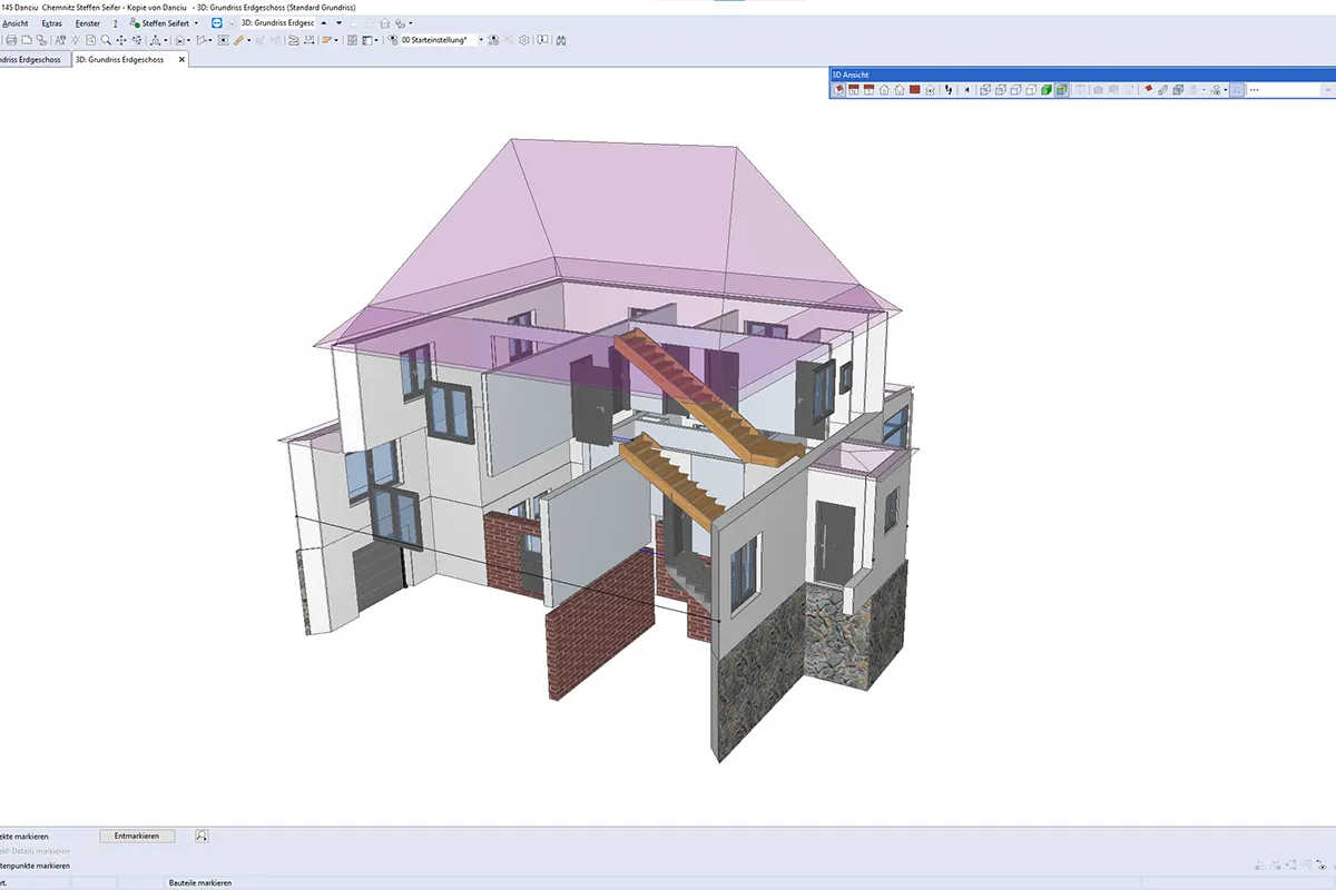 - Erstellung von Bauzeichnungen als Arbeitsgrundlage für Bauplaner und Handwerker im Rahmen der Modernisierung des Objektes